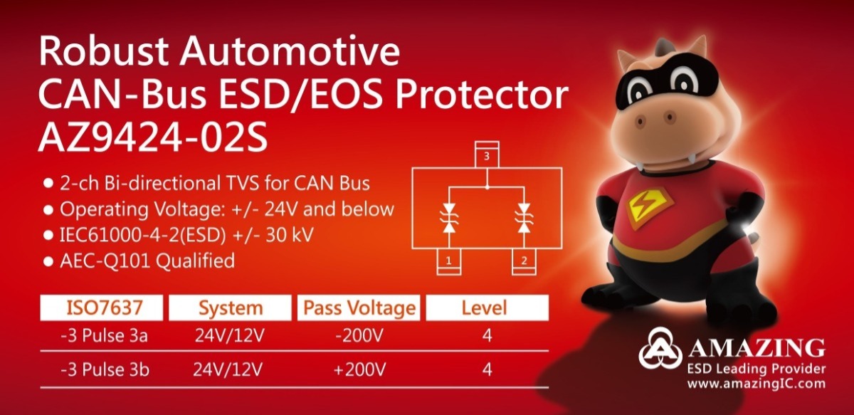 AmazingIC’s automotive ESD/EOS solution for CAN bus: AZ9424-02S