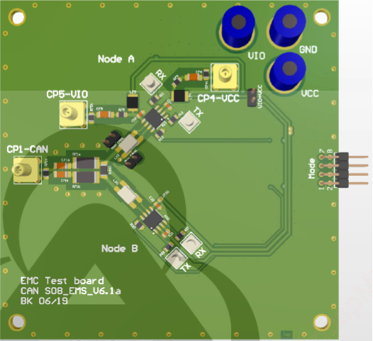 Unlike conventional CAN FD transceivers, the AZKN9325P (CAN SIC, 8 Mbps) achieves higher transmission speeds by shortening bit time. Faster signal transitions generate stronger high-frequency harmonics, which can more easily radiate or couple into surrounding circuits through bus lines. The international standard IEC 62228-3:2019 defines EMC performance requirements for CAN transceivers under minimal-node topology conditions. For major European and American automakers, meeting the strictest limit values in this standard is considered a mandatory requirement when selecting CAN transceivers.