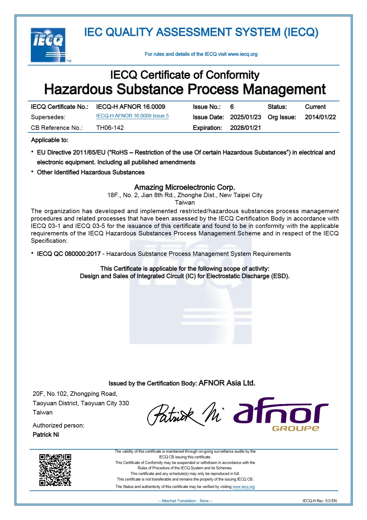 晶焱科技 品質及HSF政策﹕